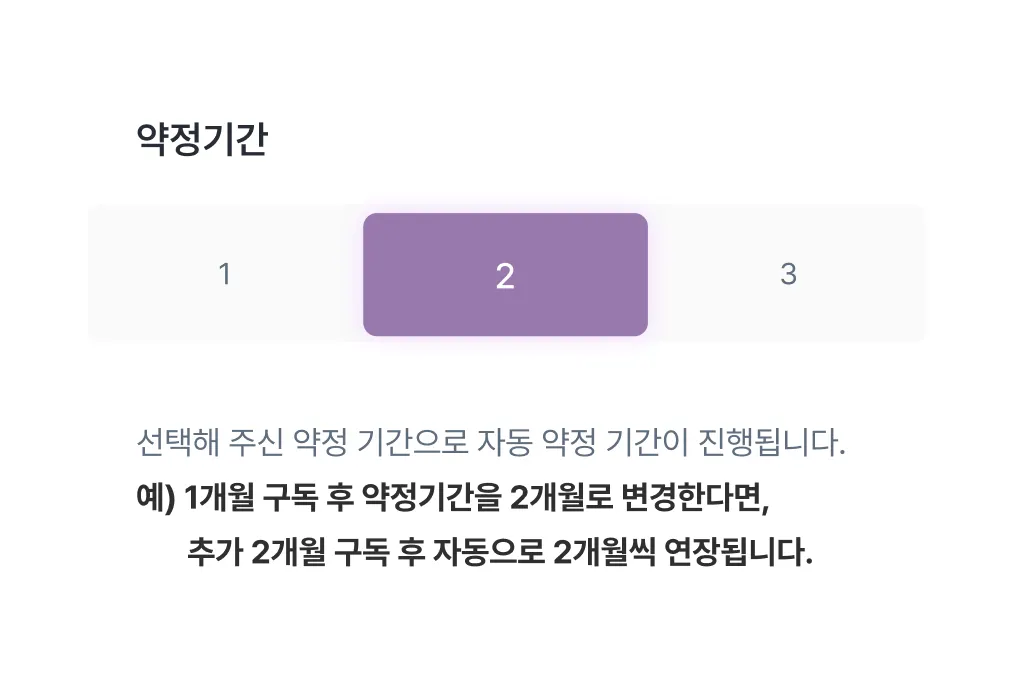 만약 3개월씩 자동연장으로 변경하고 싶으시다면 새로운 연장 구독이 시작되는 D-3일전에 약정 기간을 변경해주시면 새로운 약정 기간으로 적용됩니다.