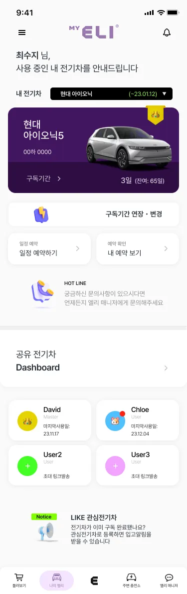 유저 초대 공유가 활성화되면서 최대 3명까지 함께 전기차를 공유할 수 있습니다.