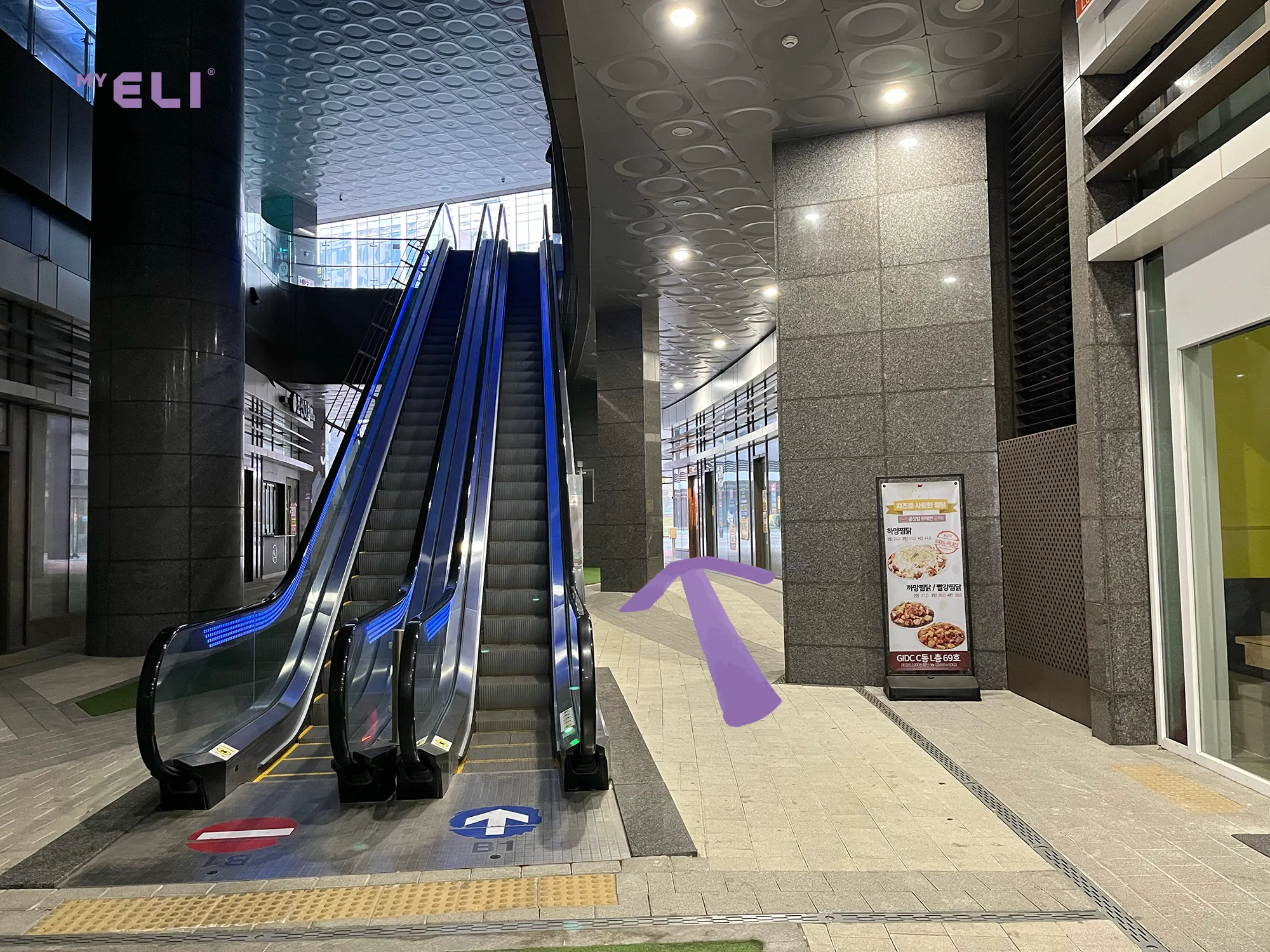 중앙 문으로 들어오신 뒤 에스컬레이터 쪽으로 들어오신 뒤 B5층으로 내려와 주시면 됩니다.